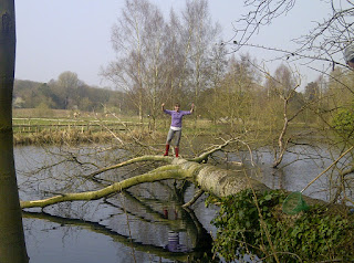 She then rather timidly crawled back along the trunk back to the bank. You know the stream was quite wide at this point, and I wonder when does a stream become a river, or was it a brook?