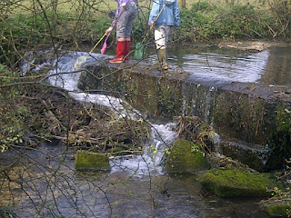Hubbie rounded up the relunctant troops, encouraged them to don their wellies, gather up the kit:  bug observation tank – check, nets, jackets, caps, camera (oh dear, not charged!) and off we went, on foot from the house.