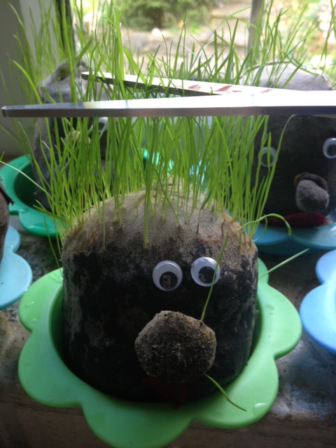 And wow! What sibling rivalry this Grass Head Family has caused! You see, each one represents a member of the family, well humans at any rate. And who’s hair has been growing the fastest? Tuna of course! And where was she at the time when we made these? Away! In Austria! So you see, we started these during half term, and she didn’t even help out and hers is growing the best… Always the way isn’t it? You try and keep things fair, and then that happens!